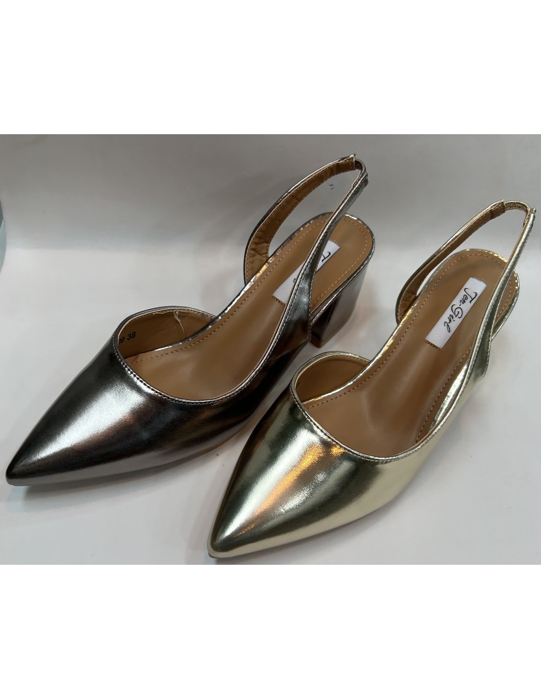 ZAPATO TACON . EN DOS TONALIDADES DORADO Y BRONCE . TACON DE 5,5 CM . PLANTILLA DE GEL .