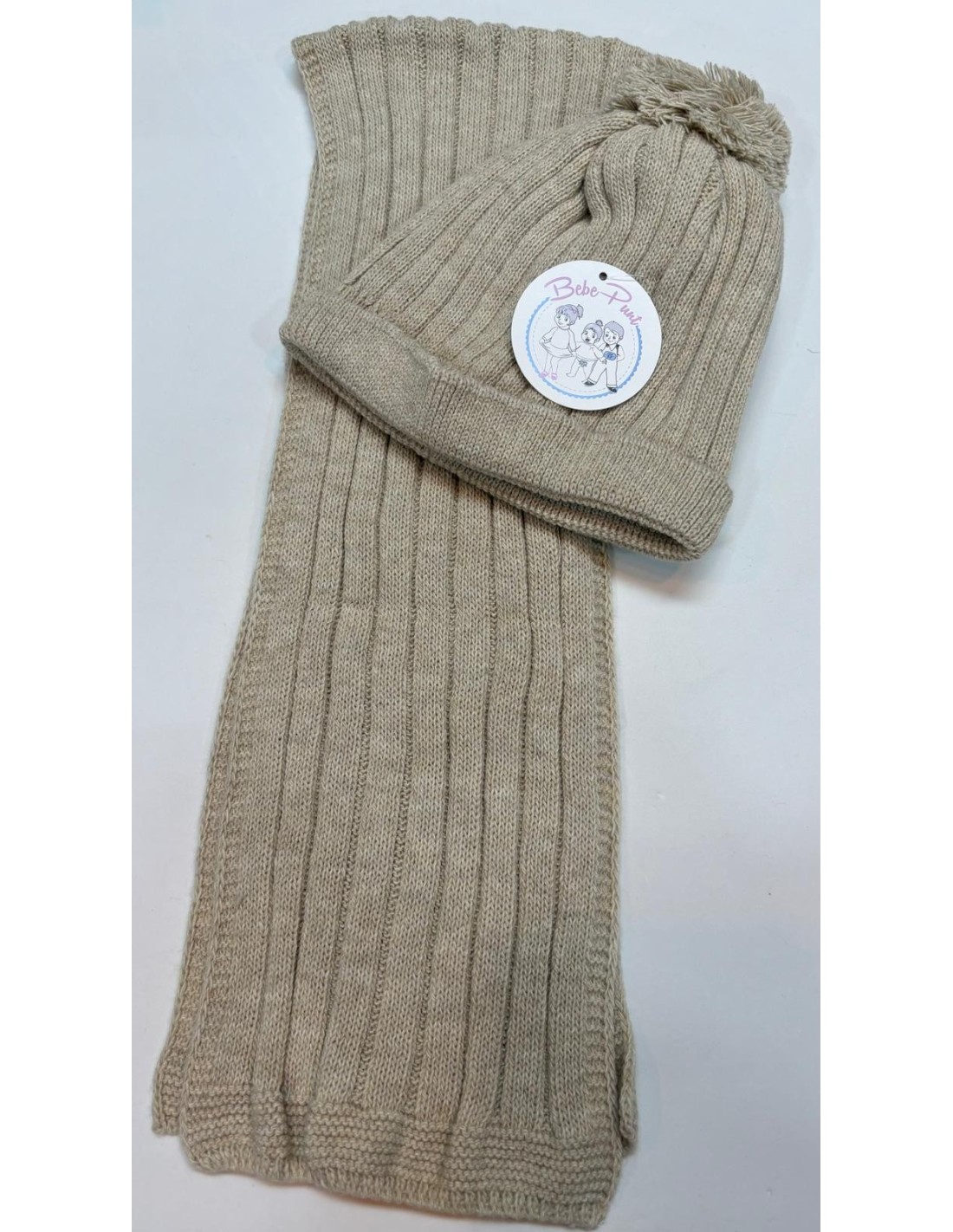 CONJUNTO DE BEBE COMPUESTO POR GORRO + BUFANDA EN VARIOS TONOS 100% ACRILICO CON TANTO ENCANTADOR.
